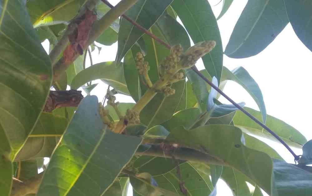今シーズンのマンゴーの蕾第一号発見。例年よりも半月ほど早いな。