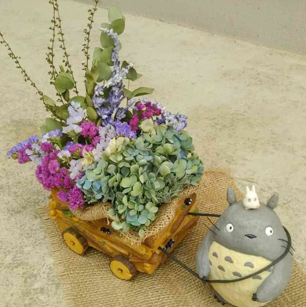 今年の春に、トトロ好きの方にこの引っ張ってる籠に、ドライフラワー詰め込んてちょうだい!ってお願いされました😆