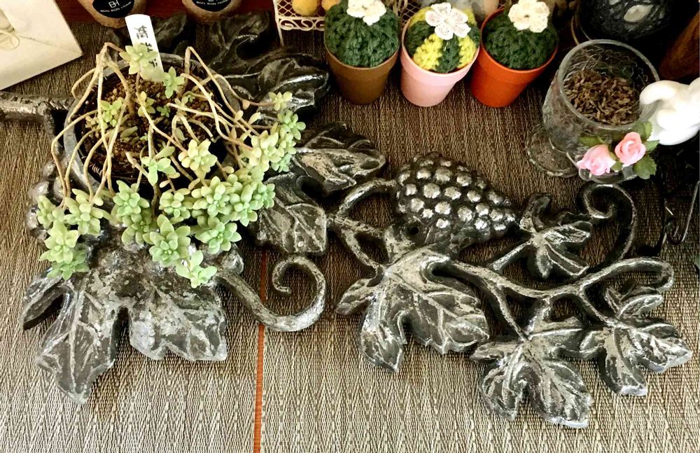 先日 店無し雑貨屋さんで買ってきたぶどうのアイアンに多肉ちゃん置いてみました😍💕🎶