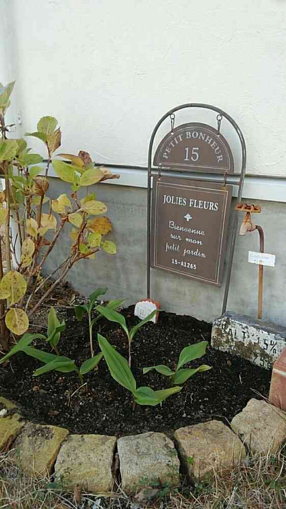 アジサイの隣に昨日ガーデンガーデンさんで40%OFFで買ったすずらんを植えました!