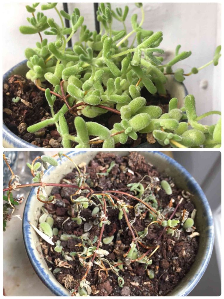 1ヶ月前までイキイキとしてたのに、急に調子悪くなってしまった我が家のドロサンテマム。寒くなって家に入れたのが駄目だったのでしょうか?😢