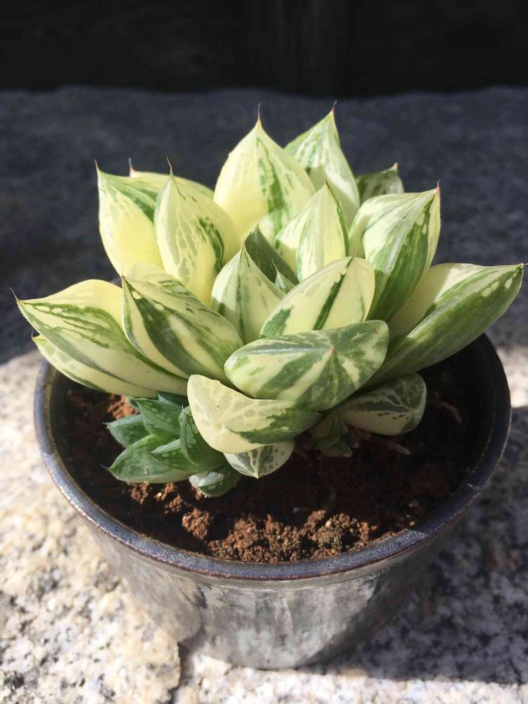 斑入りの多肉植物では、緑と白のバランスが大事です。