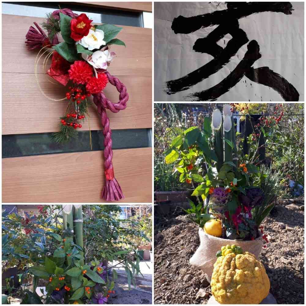 実家の山で竹を切り、ゆずり葉、梅、南天、万両、ししゆず、夏ミカン。ご先祖に感謝✨