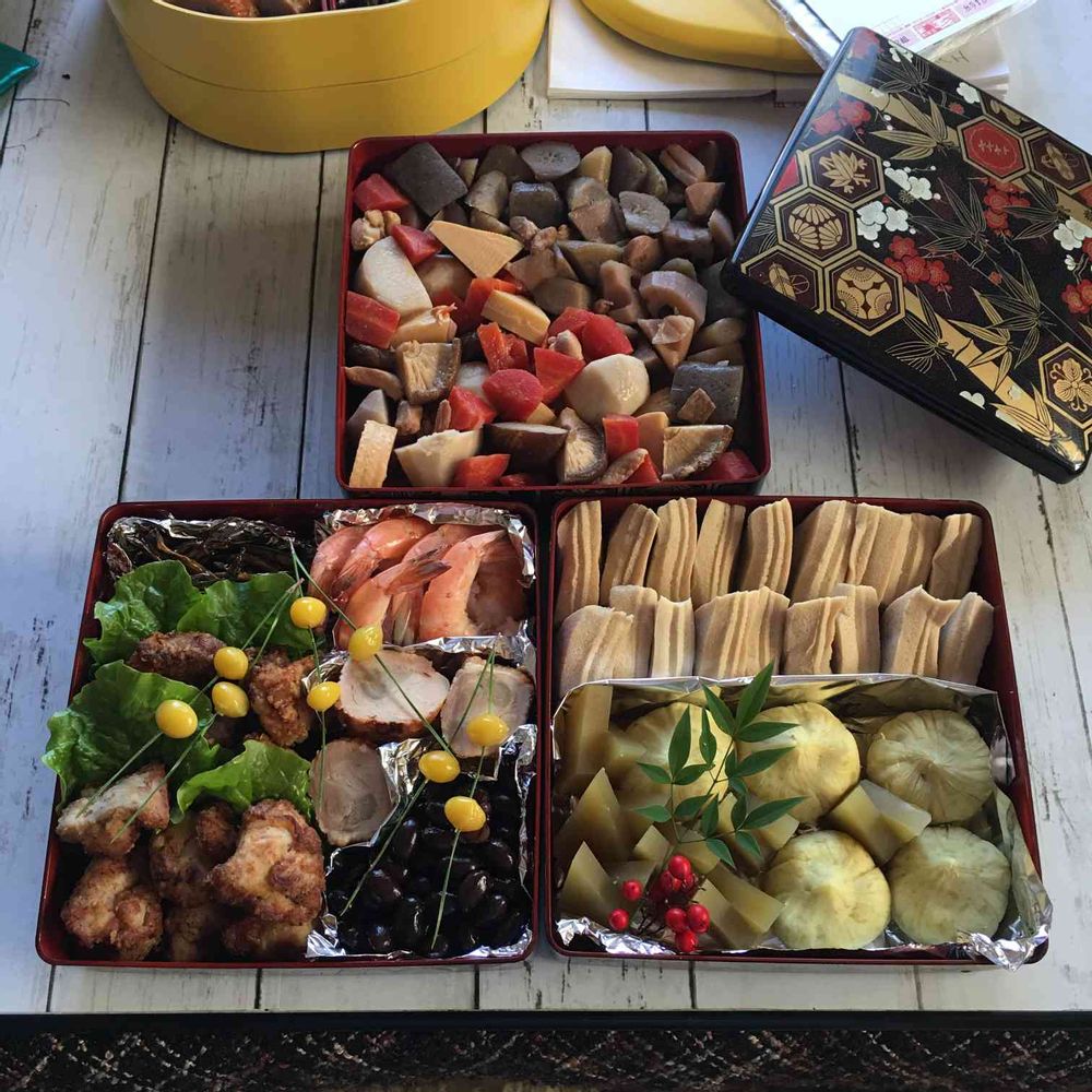 筑前煮、高野豆腐の煮物、洋風きんとん