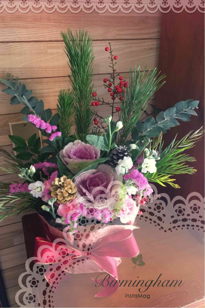 今回初めてお正月のお花を作りました。