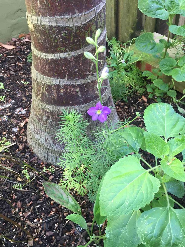 チドリソウの後ろのヤシ🌴らしき幹が気になります💓