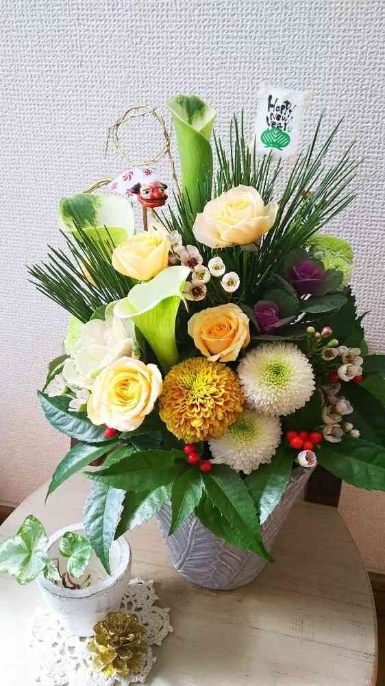 お正月アレンジ花💐✨お正月花材少しと後は好きなお花で作ってみました😳🎶りょうたんさんも是非作ってみて下さいね😄