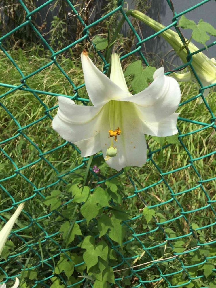 日本産のテッポウユリと台湾産のタカサゴユリとの交雑種シンテッポウユリが各地で大繁殖しています(≧∇≦)