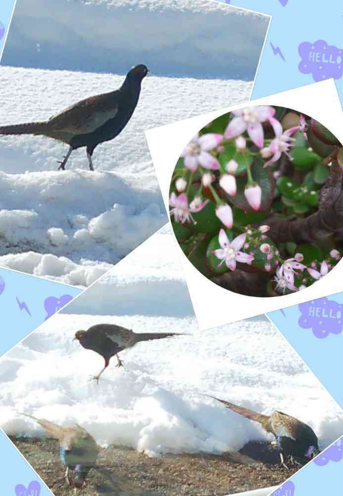 キジ君達、覚えているのね☺️毎年来ますよ🎵新雪の上に足跡👣いっぱいつけて走り回ってます😃
