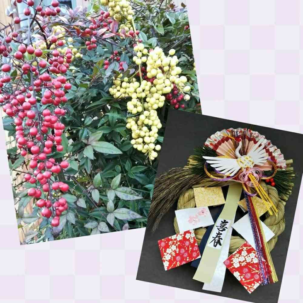 今日のお花、南天・・・の実、と我が家のお正月飾り(既製品)です💞