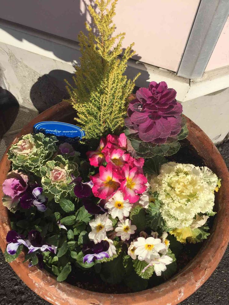 玄関,寄せ植え,葉牡丹、ビオラの投稿画像