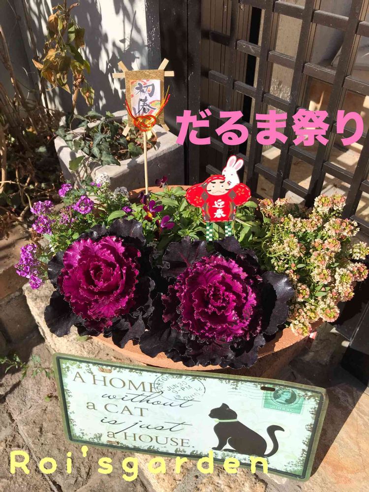 だるま祭りみっけ!参加させてくださいネ。だけどもだるまらしきものがない、お正月飾りのpicはだるま?カナ?そして葉牡丹は今日の花。