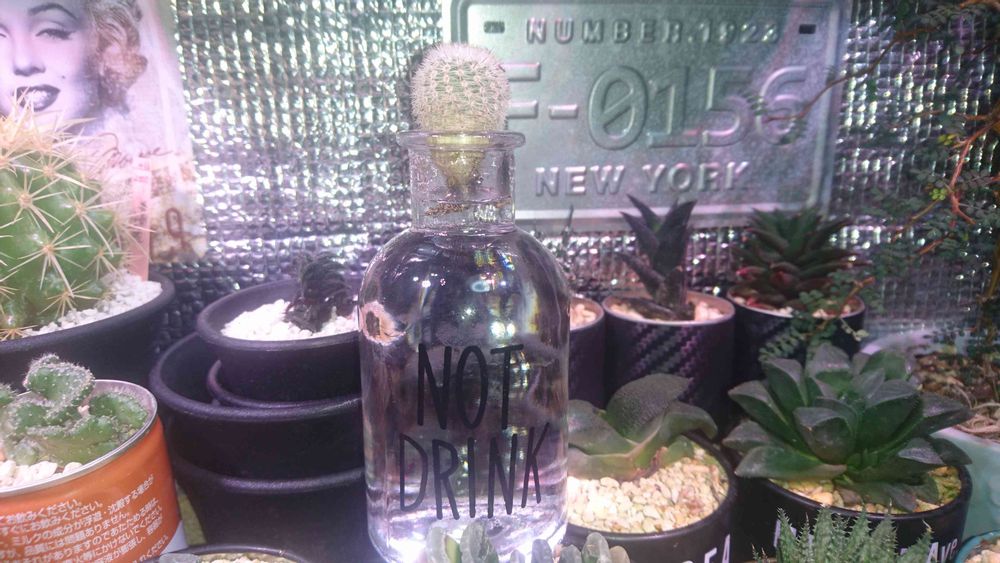 水遣りが超めんどくさかったダイソーのミニサボテン。水栽培にしてみました。セリアの瓶使用。結局¥200だがな・・・