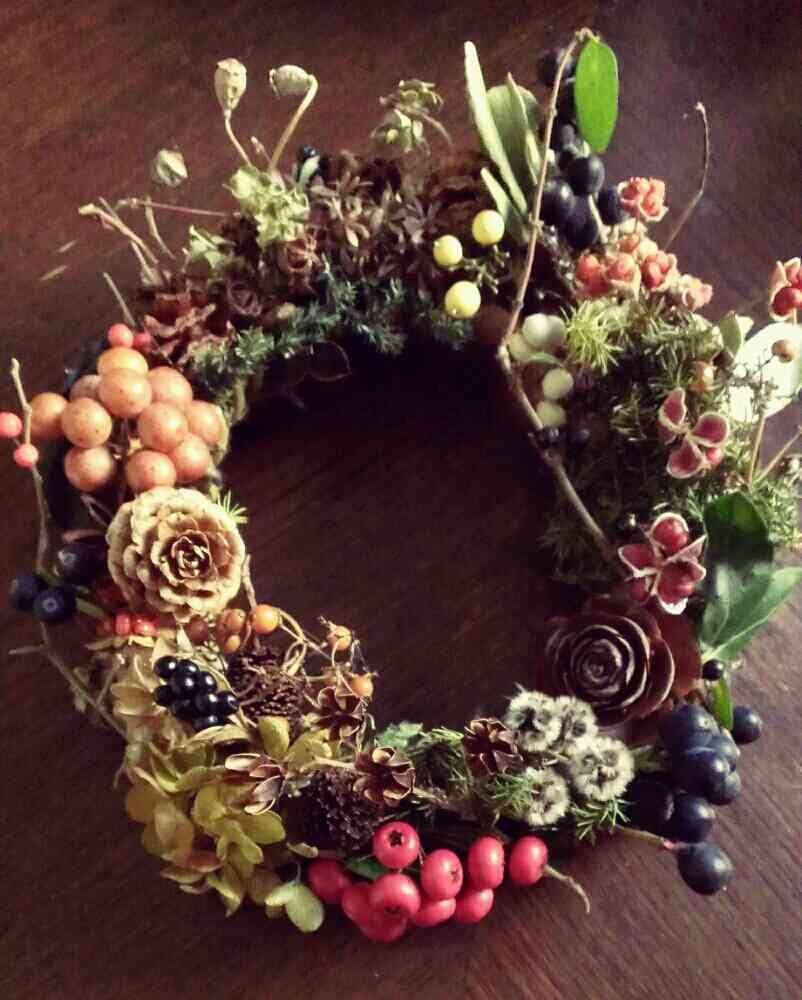 木の実探し、草花が好きです。 季節のリースやコサージュを作って楽しんでいます。