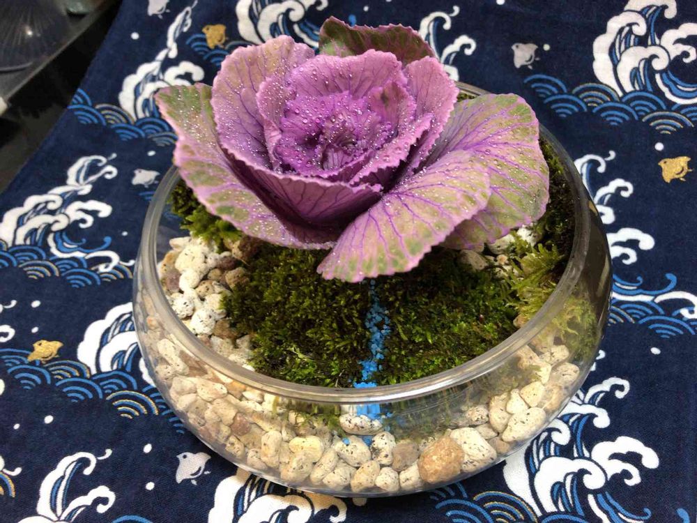 ミニ葉牡丹をコケリウム風にアレンジしてみました^ ^