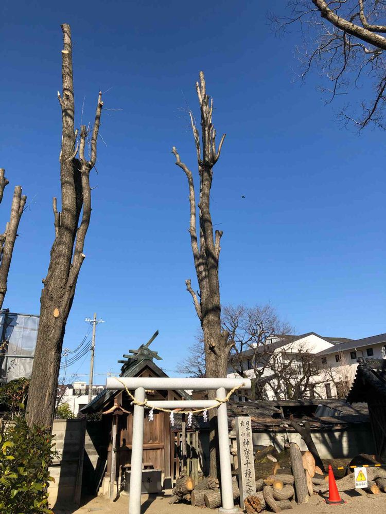 両脇の木の姿に 初め 呆然としてしまいましたが この元日の抜けるような青空に まさに力強く再生を誓っているように私には見えました