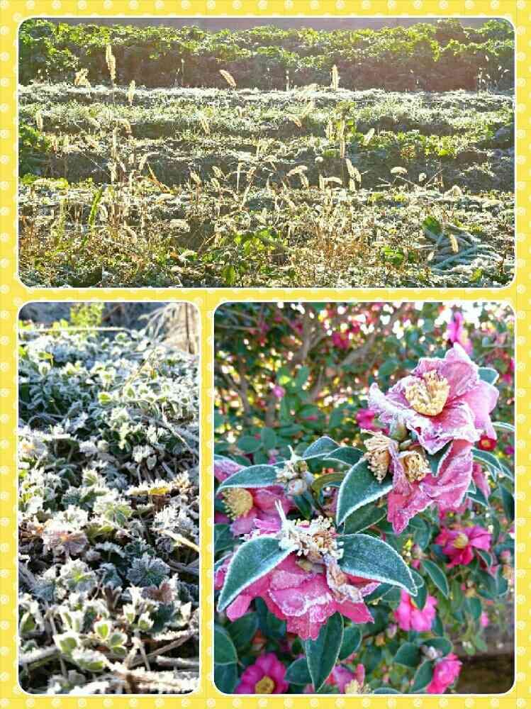 山茶花の花も、凍てついていました。