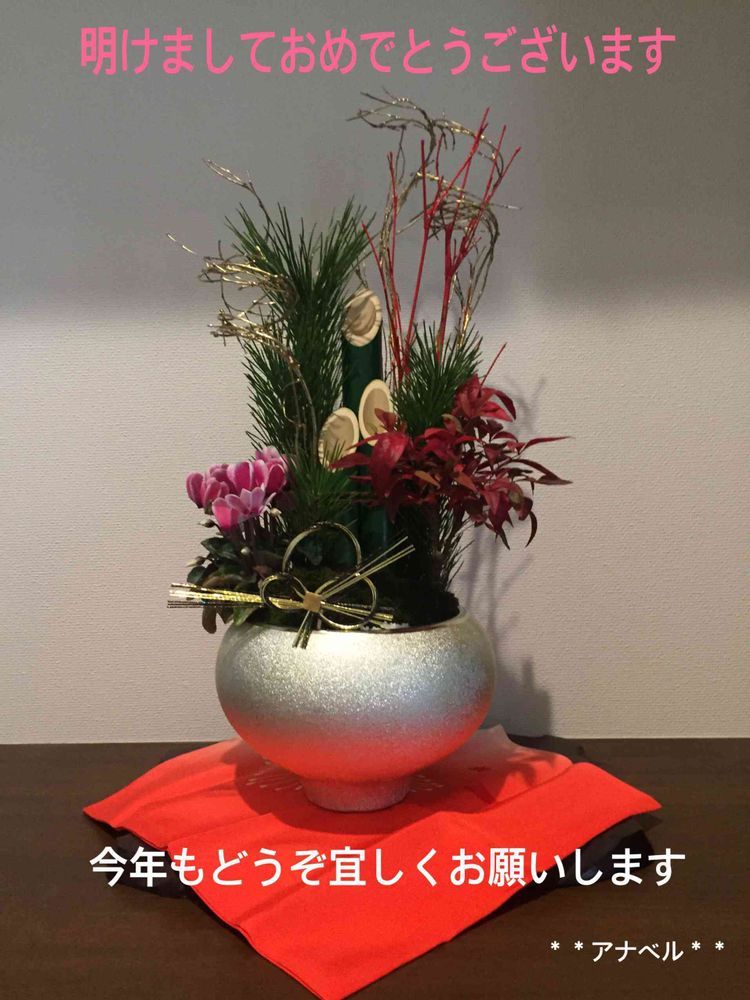 お正月の飾り鉢は金沢に行った11月にお願いしたものです〜〜笑 お正月前に届けていただいて〜〜主人が気に入りました。素敵な園芸店でした。お花でお話 広がっていきますね〜〜♡♪