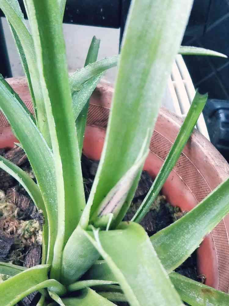 野薔薇のコンテナの株本で一年中の晒し雨曝しのアナナス、花芽みたいのついてる❗️?