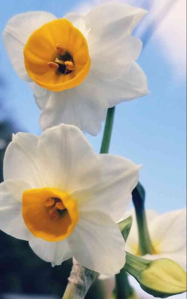 Uターンしゆく娘一家を一緒に見送る、駐車場のニホン水仙🚙💦💨😌低ーい山の鳥たちのさえずりも覚えていてくれるかな🐦🎶…さあさあ今からお掃除ネ💪