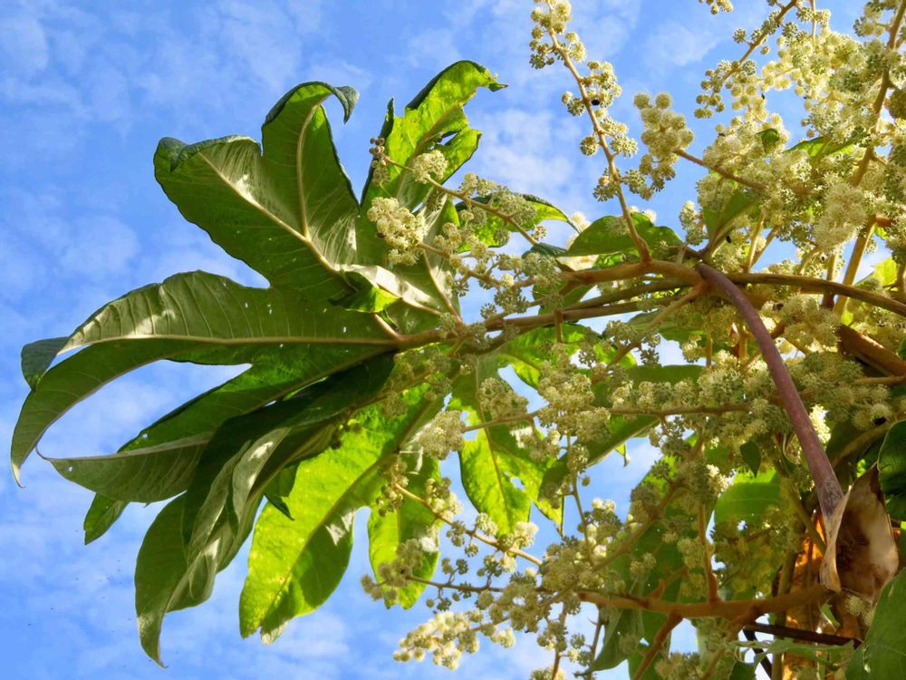 笑笑〜カミヤツデの花は小さいのに、葉っぱは、こんなに巨大!!!