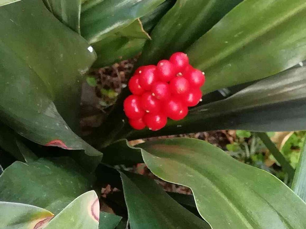 押し合いへし合いの鉢植えなので覗き込まないと可愛い真っ赤な実が目に付きません!