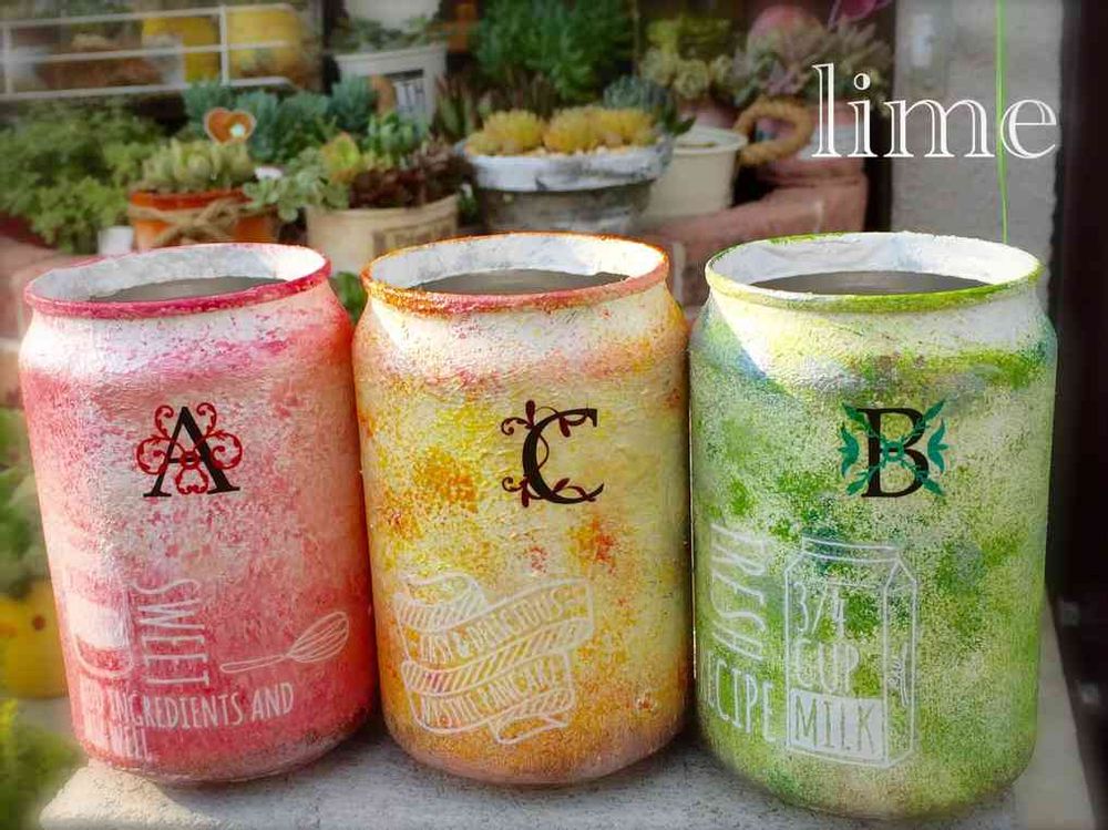 お中元で頂いたジュースを子供たちが直ぐに飲み干してくれたから、早速リメ缶に💕