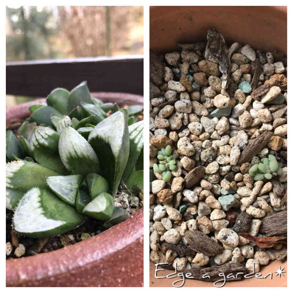 右は 去年の春 買った花鉢の上に落ちていたのを 多肉用の土の上にのせて置いたもの🌿