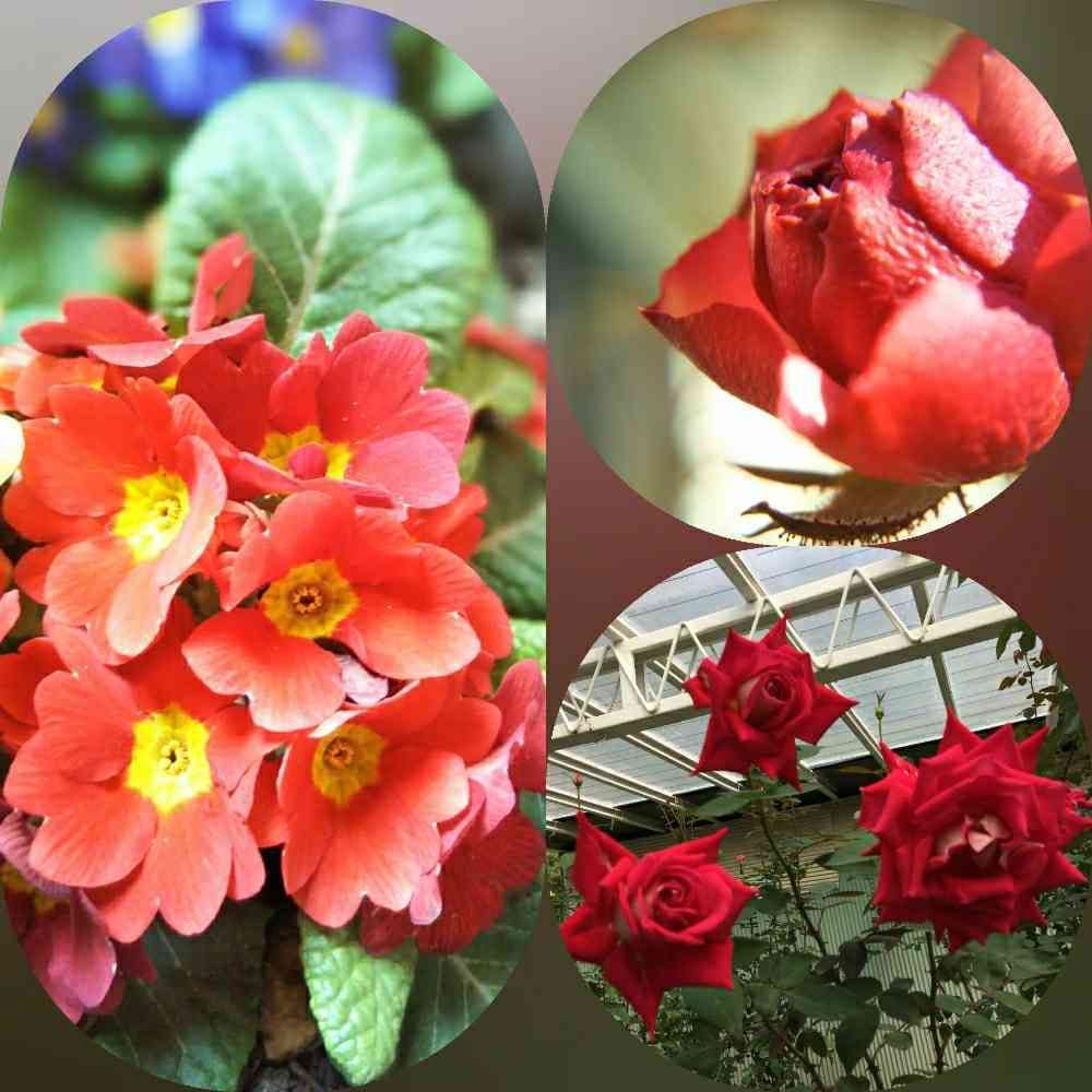 左プリムラ。右上まだ蕾状態の薔薇🌹