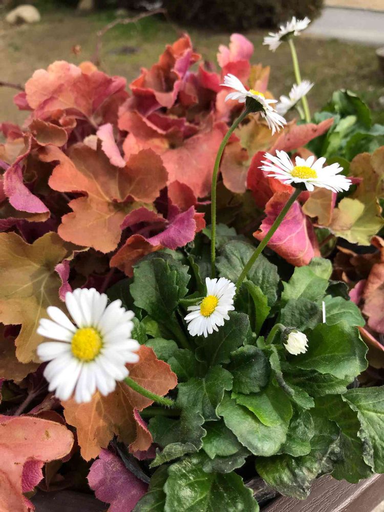 このあと、デージーはおうちに、ヒューケラは日当たりのいいお外のまま。
