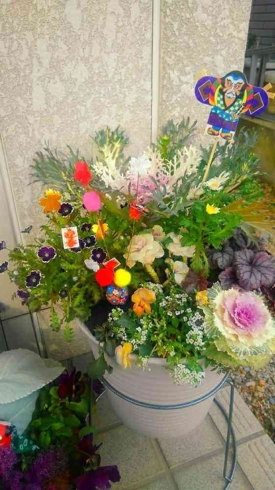 お正月用の寄せ植え。