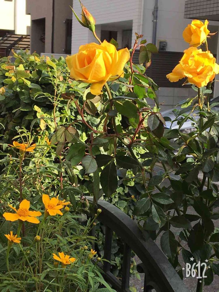 「比較的、病気の多い黄色いバラのなかでも、レヨン・ドゥ・ソレイユは 強くて実もつきにくいからお花のお世話も要らない」って書いてありました〜〜💛 ふむふむ・・・📝♬