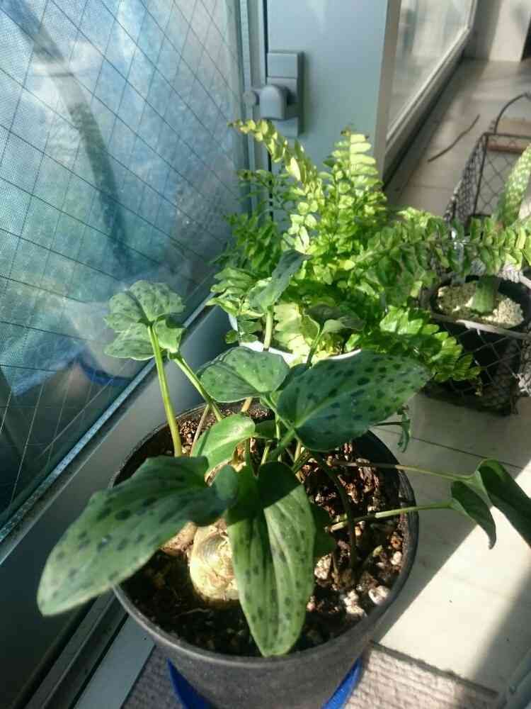 水玉模様(斑点)の葉っぱを持つ球根植物です💚
