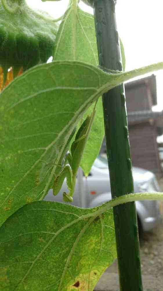 雨宿り中のかまきりの様子を見に。(パパラッチたかはち出動😁)