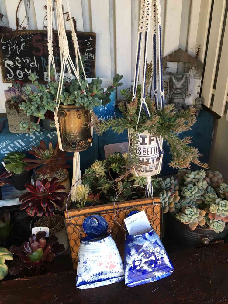 素敵に編み込まれたプラハンとぶら下げられるリメ缶😊