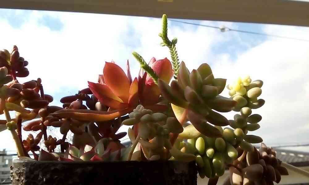 寄せ植した多肉ちゃんがいい色に❤❤💛💚💜