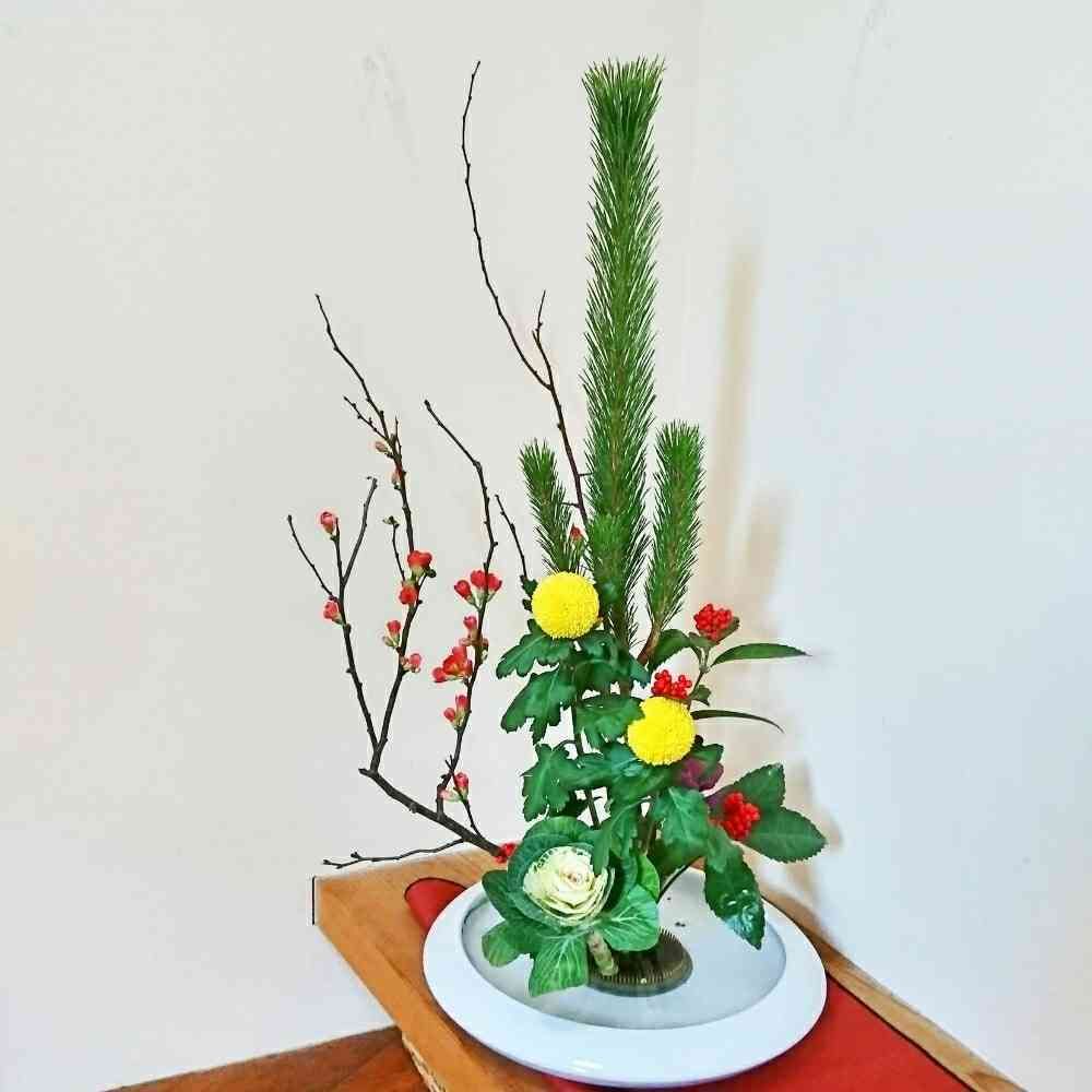 この年末は忙しくて、お稽古でいけた花材だけで盛り花をしました。假屋崎さんみたいにもっと華やかにモリモリにしたいものでしたが、お花を買いに行く暇がなく( ´д`)