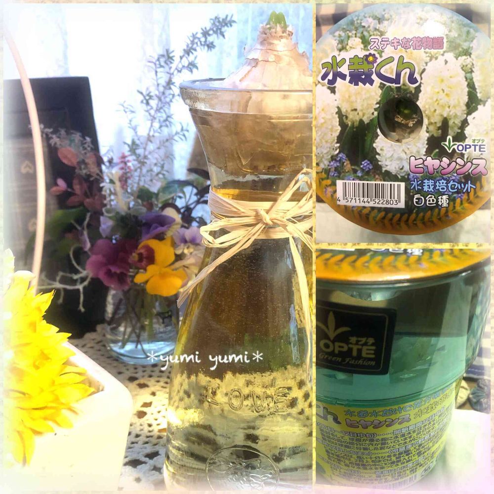 お仕事の帰りに寄ったスーパーでヒヤシンスの水耕栽培セットを発見!「水栽くん」(^^)