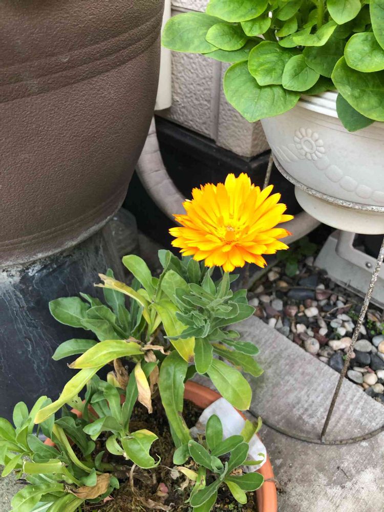 知り合いから苗を貰って育てています。マリーゴールドの花と聞いていたのですが、葉の様子が違う気がします、どなたか名前をご存知でしたらお教え下さい🙇♂️