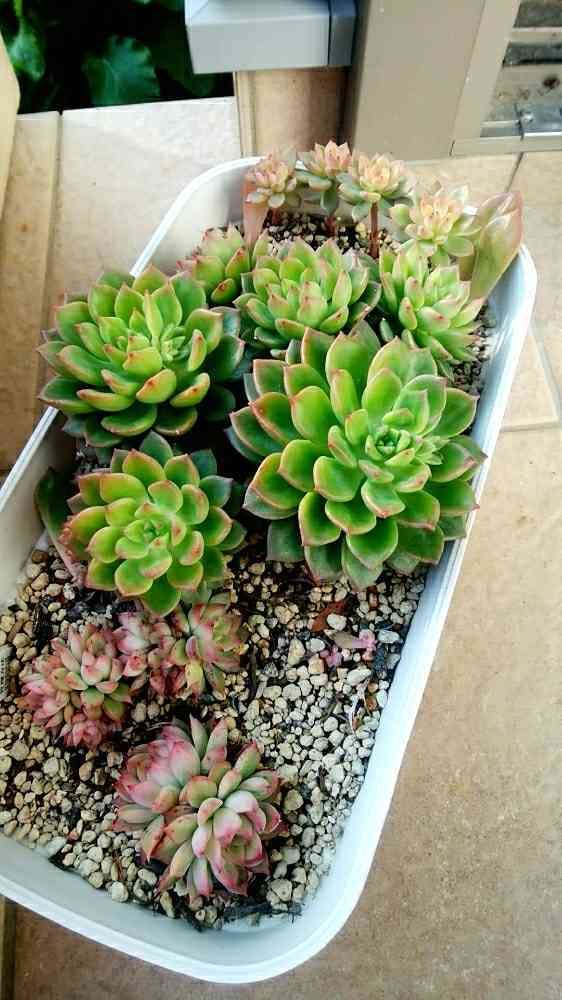 手前の女雛と奥のエメラルドグリーンは葉挿しでここまで大ききなりました。