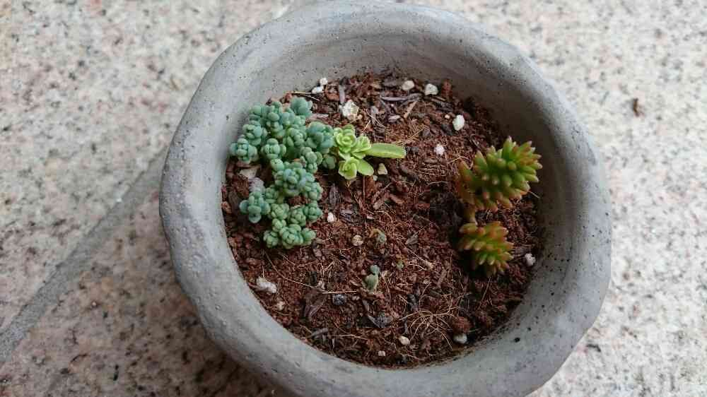 養生鉢に、グリーンペットを挿し芽で追加。ブレビフォリウムが少しずつ増えてて嬉しい♪