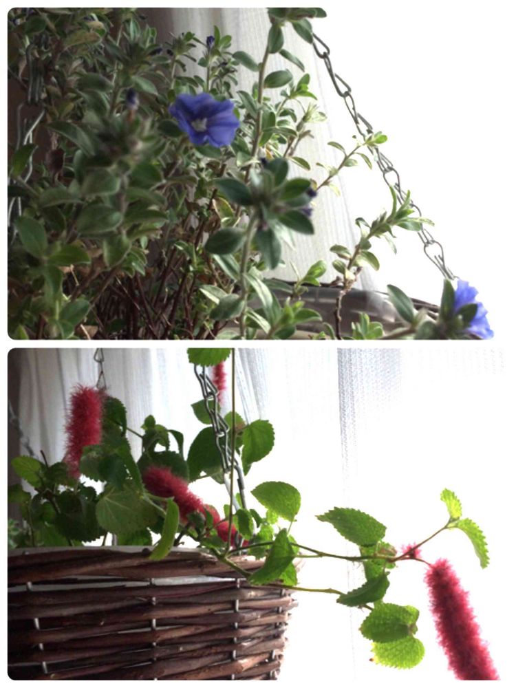 こんにちは💕こんなに可愛い鉢(カバー?)でハンギングしてるなら、みんな室内でいいのに~なんて思っちゃうわ😊この前、HC でキャットテールのモフモフ無しが見切り品で出てて、すごく悩んだの。(とにかく見切り品に弱くて買いすぎて、雑多になりすぎる💦)だけど、まあさんのを見て、ほしい気持ちがムクムクムク。アメリカンブルーも、素晴らしいわ✨