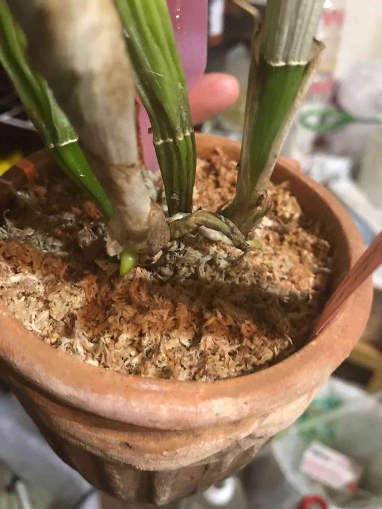 唯一生き残っていた根っこを中心に水苔を巻いて植え替えをしました。