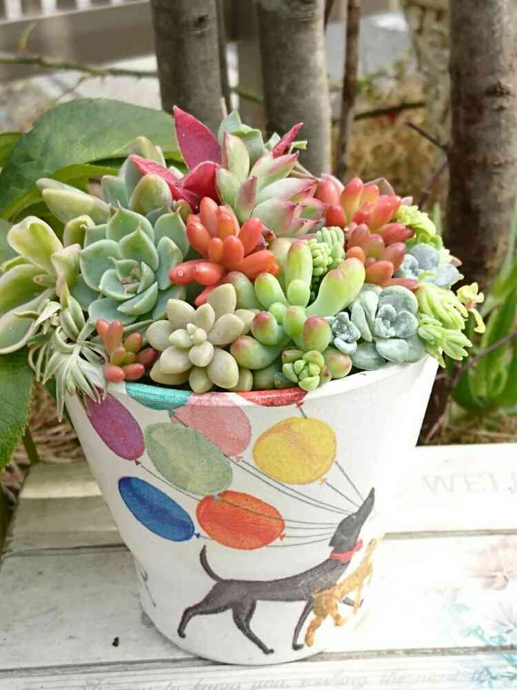わんちゃんの鉢も多肉もカラフルでかわいいね❤️