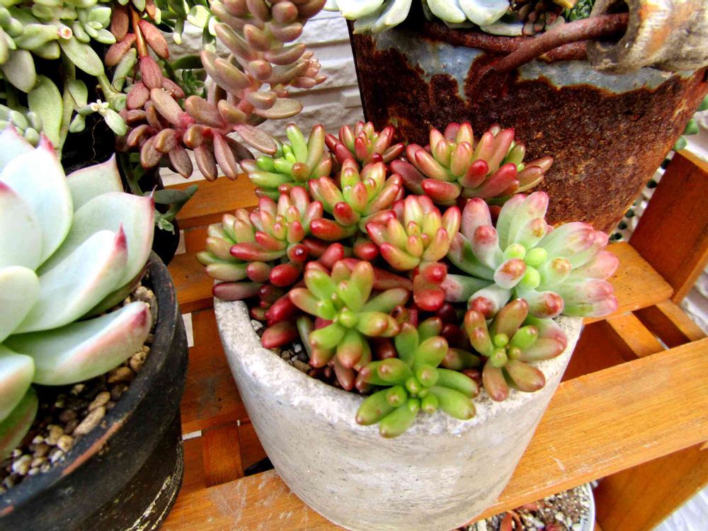 虹の玉が安定の可愛さ。葉挿しで増えて育った場所が違うから紅葉もバラバラ。乙女心も可愛い( ˊᵕˋ* )