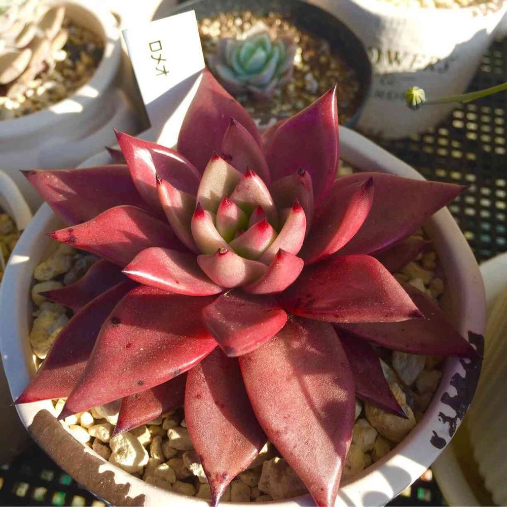 我が家の多肉棚で一番鮮やかな赤のロメオ。