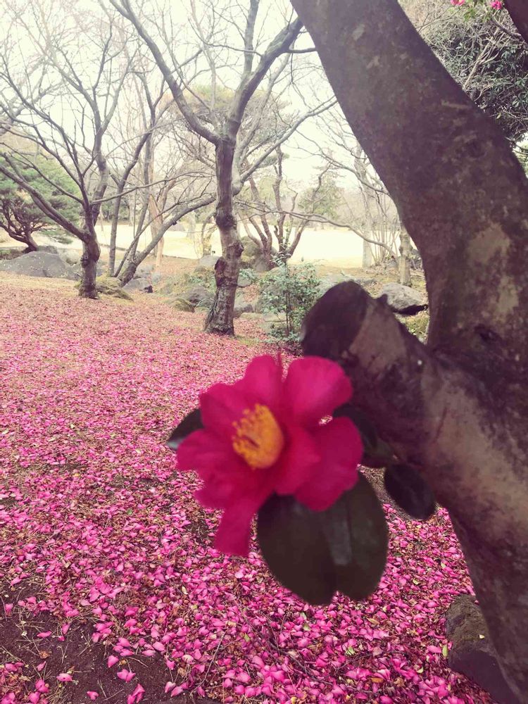 花🌼ビラの池に一輪のさざんか。綺麗です。最後の一輪でしょうか?