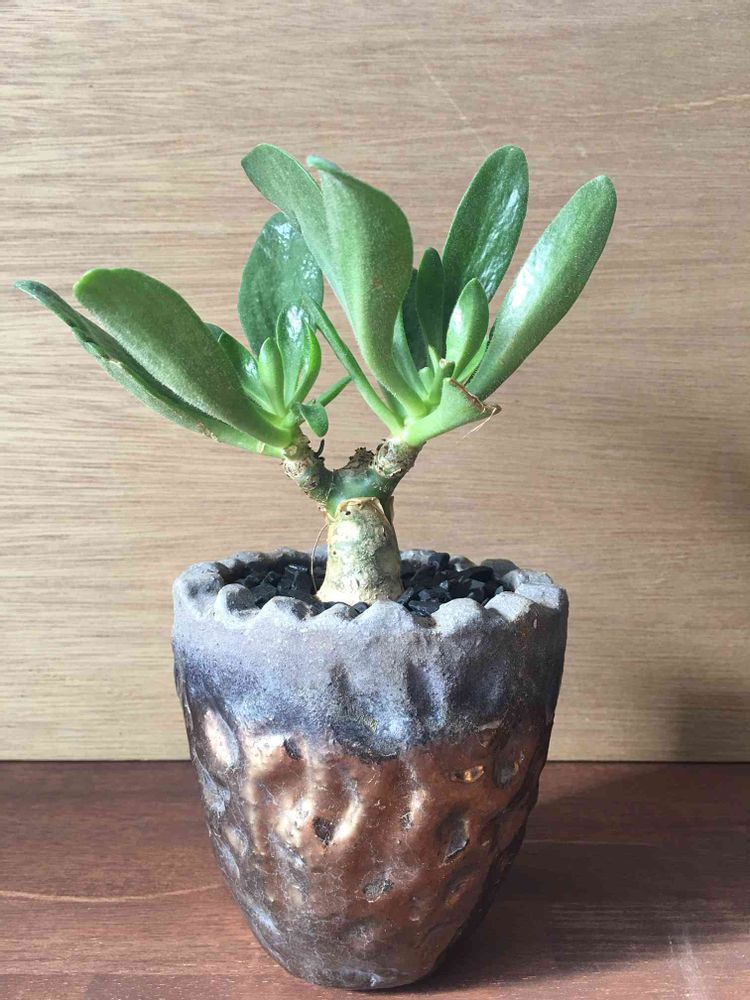 TISTOU20周年で頂いた鉢に、鉢底穴を空けて、チレコドン・パニクラータ( Tylecodon paniculatus )を植え替え。