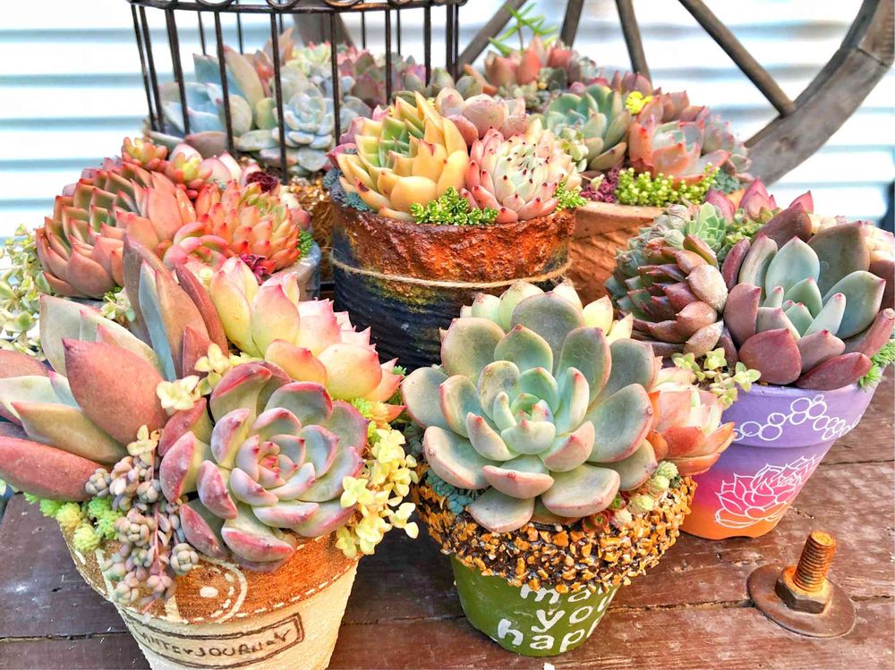 素敵なリメ鉢・リメ缶に色とりどりの多肉💕