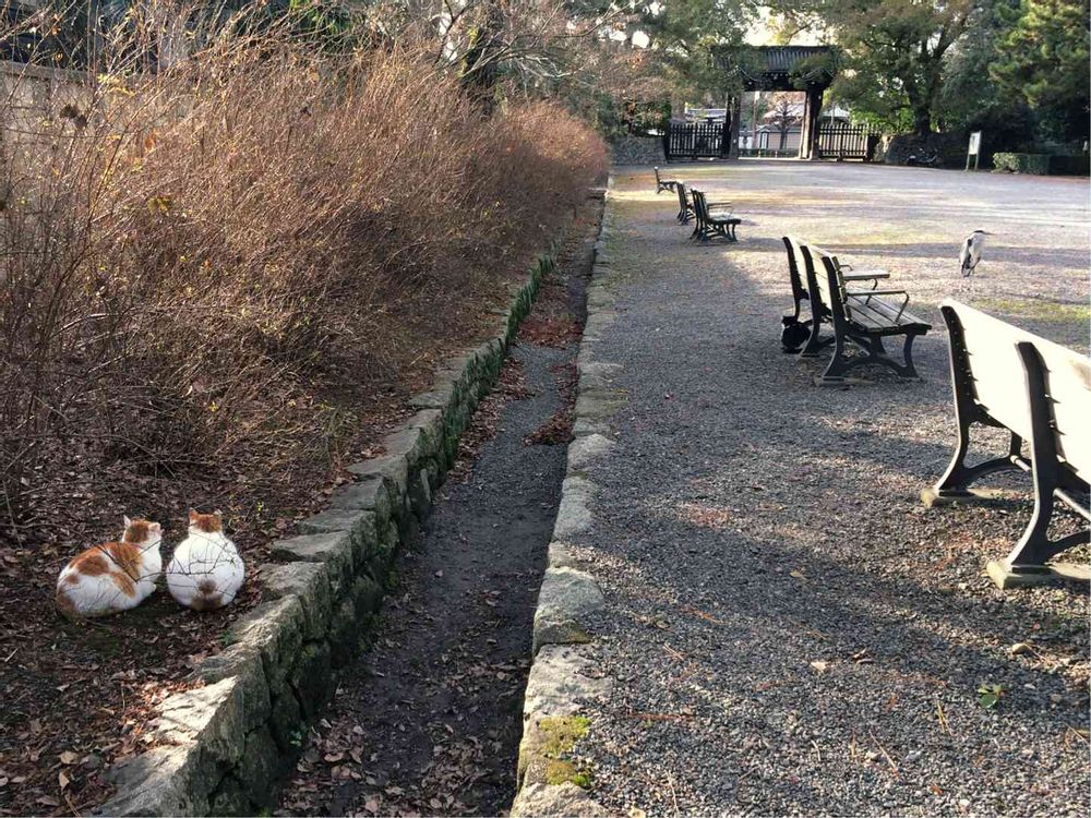 アオサギもですが、猫ちゃん2匹がどんな内緒ばなしを